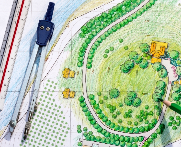 - การออกแบบพื้นที่ใช้งาน เช่น มุมนั่งเล่น บ่อปลา หรือทางเดินในสวน